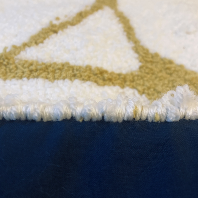 Tapis tufté main - mélange de laine Oeko tex, de coton et de toile de jute. Peut-être utilisé en pièce murale ou au sol.